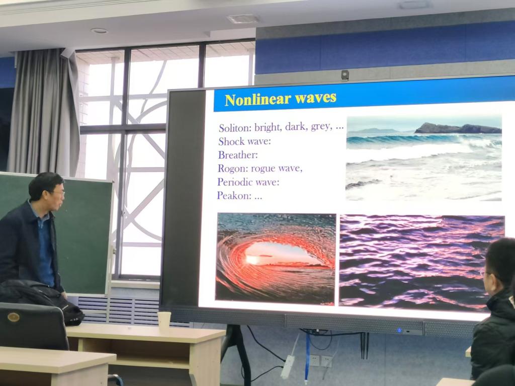 闫振亚教授作报告,闫老师详细阐述了数学物理方程。数学物理方程是描述自然界中各种物理现象的数学模型,它们在物理学、工程学、生物学等领域都扮演着至关重要的角色。通过求解这些方程,我们可以预测和解释各种物理现象,从而推动科学技术的进步。例如,在量子力学中,薛定谔方程描述了量子系统的演化,为我们揭示了微观世界的奥秘。其中,PT对称是近年来物理学领域的一个重要研究方向,它指的是在复平面上,一个物理系统的哈密顿量在PT变换下保持不变。这种对称性在非厄米量子力学中具有重要意义,它为我们提供了一种新的研究方法,帮助我们更好地理解量子系统的性质。PT对称的研究不仅有助于我们深入理解量子力学,还可能为量子计算、量子通信等领域带来新的突破。“数学物理方程”和“PT对称”是物理学和数学领域中的重要研究方向,它们相互关联,共同推动着科学技术的进步。
