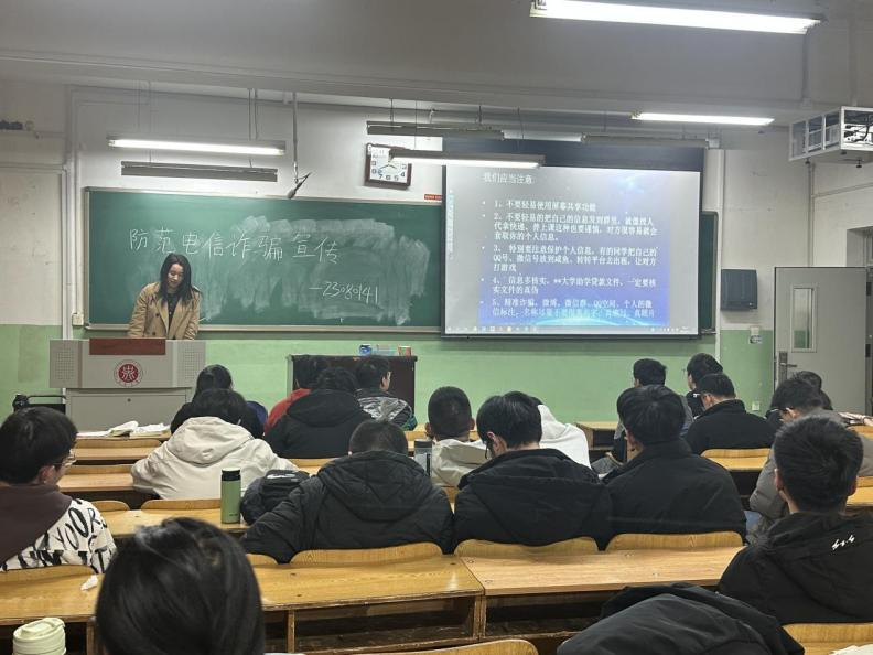 宣讲会上,各班主讲人担任起反诈“宣传员”。他们精心准备了详实的资料,从常见的网络电信诈骗类型入手,深入浅出地讲解刷单返利、虚假贷款、冒充熟人诈骗等手段。在讲解刷单返利诈骗时,以实际案例展示骗子如何先用小额返利获取信任,再诱导受害者投入大额资金,最后消失不见。对于虚假贷款诈骗,着重分析骗子以“低息、无抵押、快速放款”为诱饵,要求受害者先缴纳各种费用的套路。主讲人不仅局限于理论讲解,还结合校园生活实际,分析诈骗分子可能利用的场景,如兼职找工作、网购退换货等。同学们全神贯注,积极思考,深刻认识到网络电信诈骗的严重危害。