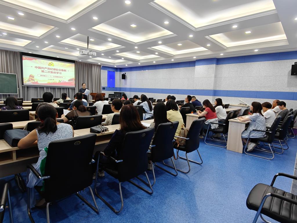 教工第一、二、三党支部于5月24日下午3点在924会议室组织全体党员第二次联合学习新修订的《中国共产党纪律处分条例》,会议由第一支部书记宋妮同志主持。