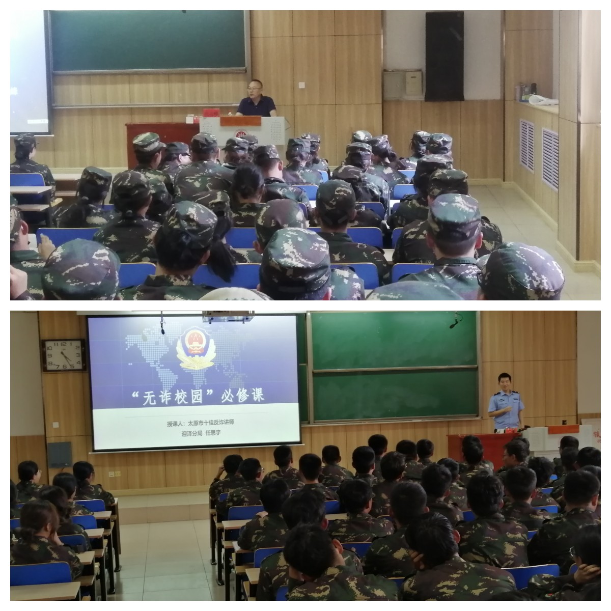 邀请了太原市公安局迎泽分局任思宇警官为同学们做“无诈校园”专题讲座。任警官从“什么是电信诈骗”、“电信诈骗的特点”、“电信诈骗的手段”以及“如何预防电信诈骗”等方面结合生动的案例进行讲解,他提醒同学们切勿轻易相信他人,不轻信来历不明的电话、短信,不轻易透露自己的身份和银行卡的信息,要不断加强在生活中遇到诈骗时灵活应对能力,提高各方面自我保护、自我应对能力。