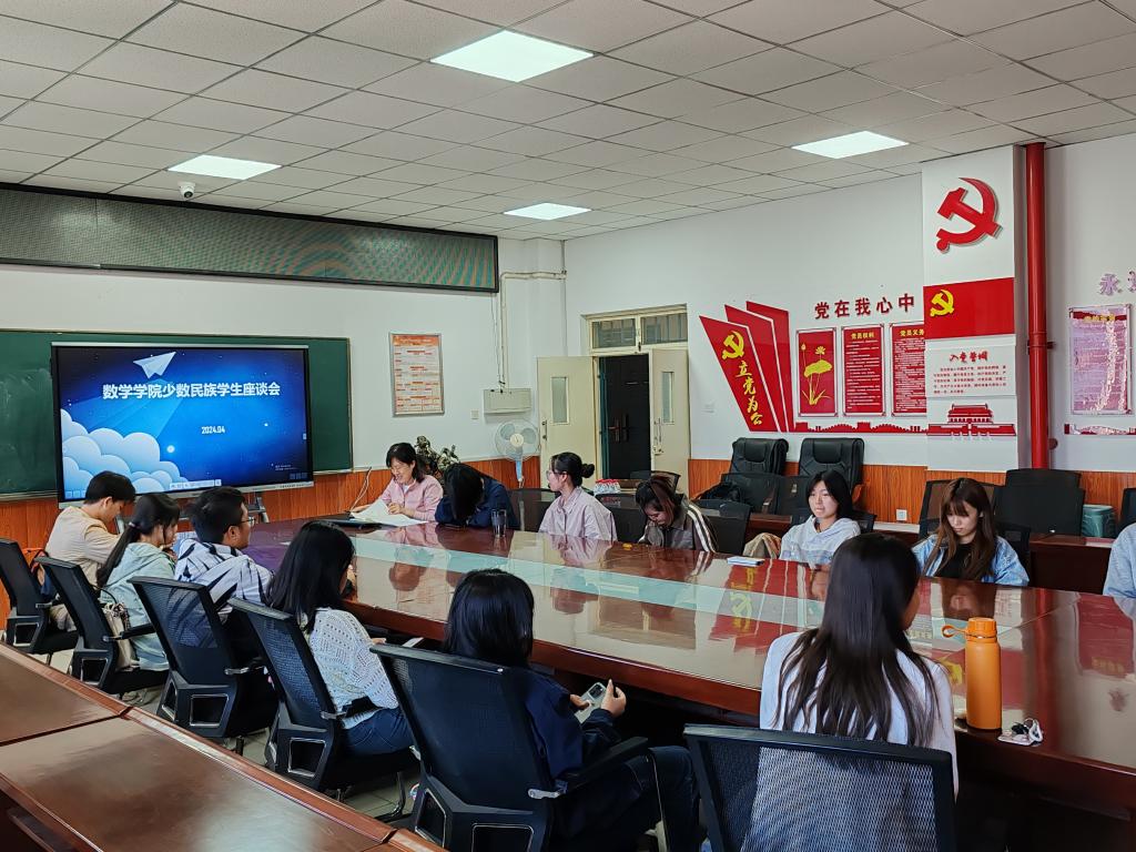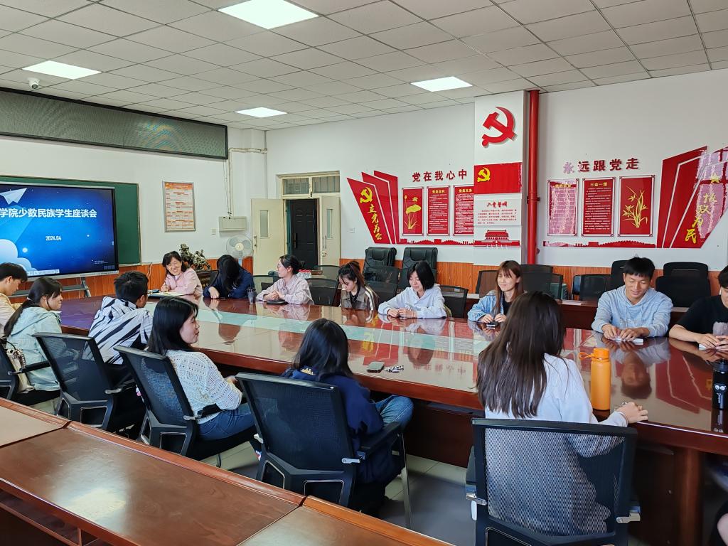 在会议室召开2024年春季学期少数民族学生座谈会。来自各专业少数民族学生20余人参加了座谈会。会议由学生科于敏老师主持。