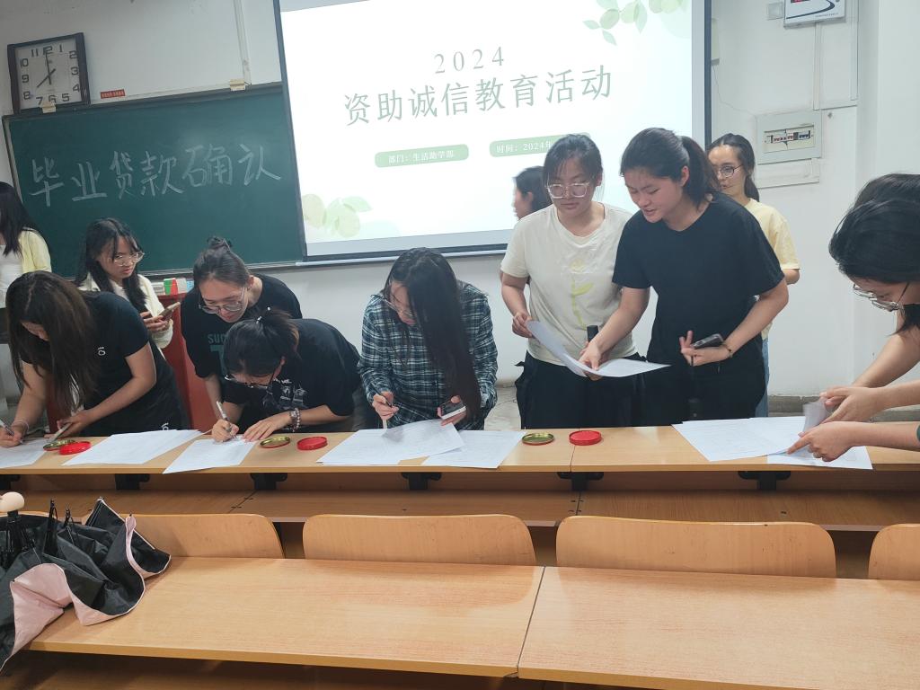 活动的主要内容为:向各年级生源地贷款续贷学生讲解国家和高校学生资助政策的相关知识,找出同学们对资助政策有哪些认知不足,并解决认知不足产生的问题,加强同学们之间还有同学们和生活助学部之间的交流,方便生活助学部工作的进行,从而更好的帮助办理助学贷款的学生。同时生活助学部的同学已逐一落实开发银行助学贷款学生毕业确认工作。为配合我校贷款工作的落实,统一组织贷款毕业生现场进行贷款确认,组织学生在毕业确认表签字按手印后存档。