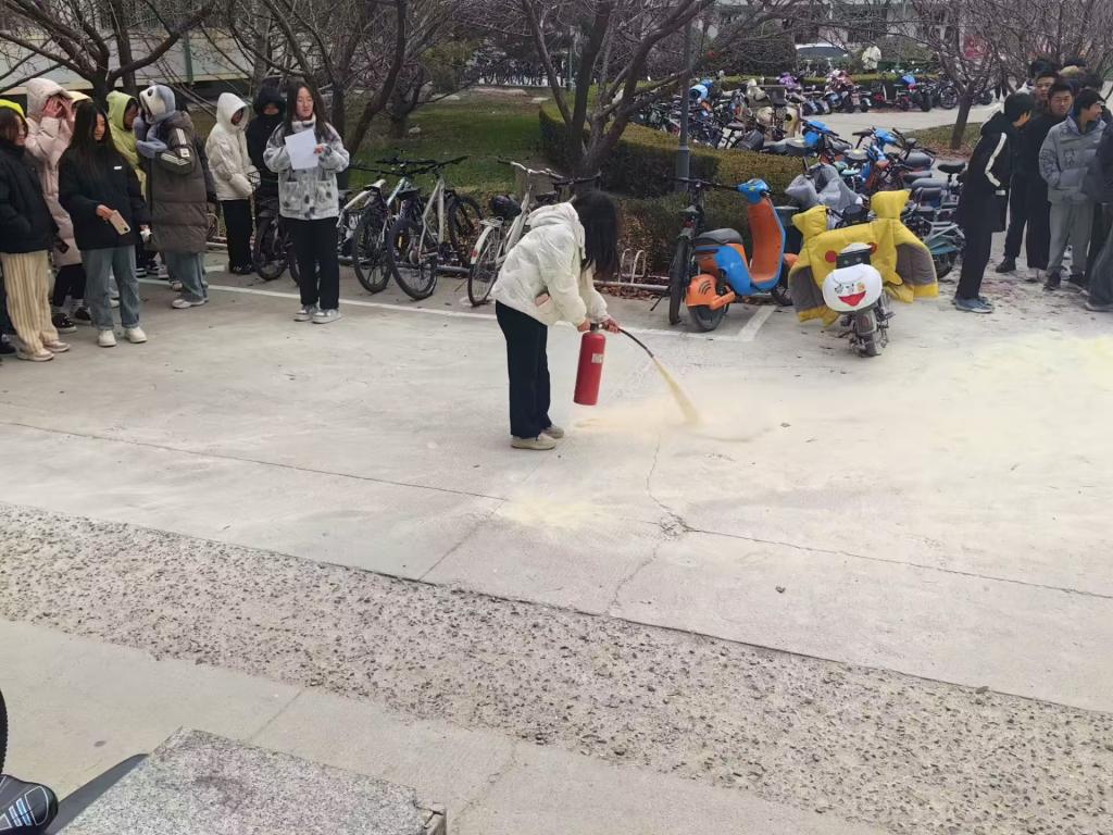 随后,每位同学都按照要领操作灭火器,人人都会使用灭火器,正确掌握灭火器的操作方法。
