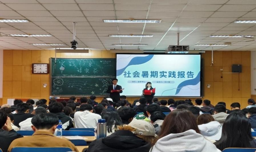 在11208H成功举办了2023级暑期实践归来话活动。“暑期实践归来话”活动的主要目的是为了促进参与实践活动的学生之间的交流、分享和反思,让他们能够对实践经历进行总结和归纳,提升实践能力、发展综合素质,同时让同学们深入了解了社会现实,增强社会责任感和使命感。本次活动主要面向于全体大二学生,共计260人,出席本次大会的嘉宾有团委学生会学生骨干,分享选手等等。会议由谭梓豪和杨娜同学主持。